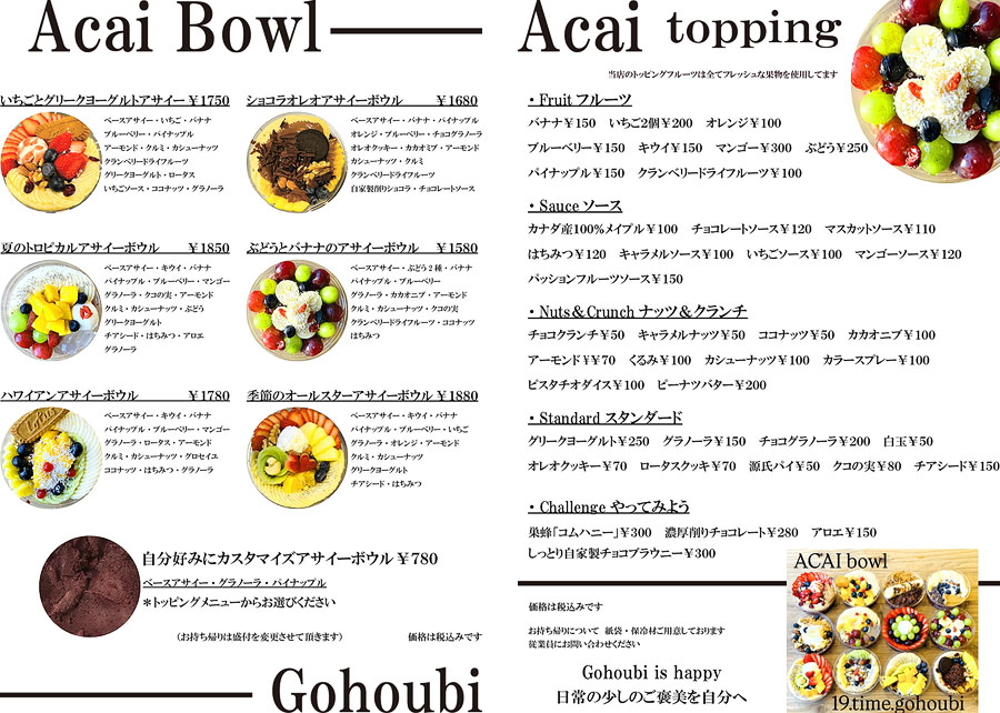 店名の「19時のGohoubi」は、育児のご褒美と読みます。日常の少しのご褒美を、育児のご褒美も忘れずに・・・