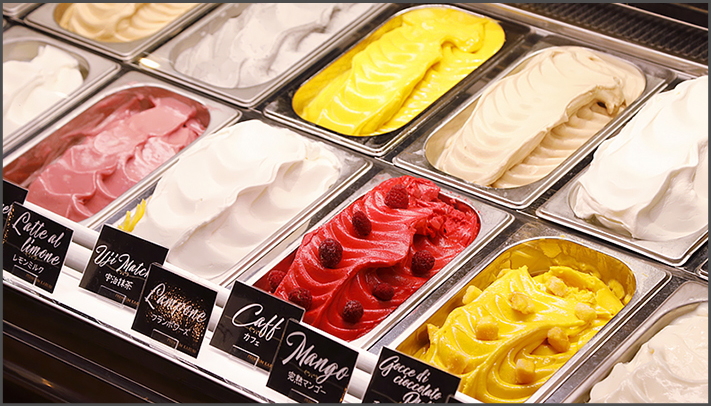 店内出来立てのジェラートは滑らかな舌触りが特徴で、毎月3種類の新しいフレーバーをご提供しております。