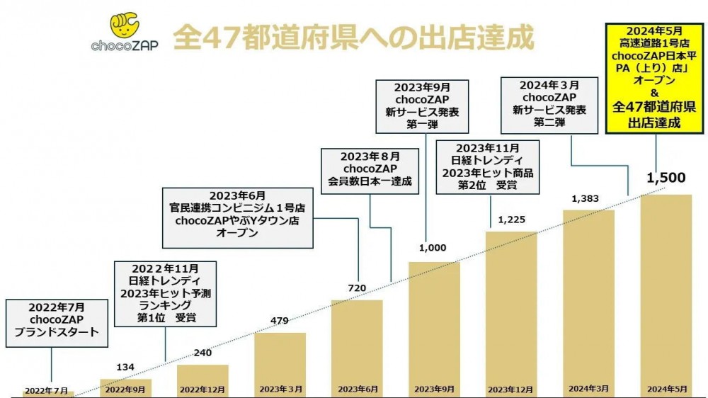 RIZAPグループは、急成長中のフィットネスジム「chocoZAP」のフランチャイズ展開を開始すると発表しました。これまで直営店のみでしたが、今後はフランチャイズオーナーと連携し、国内外で出店を加速させます。