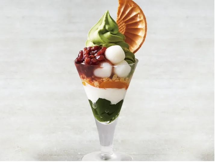 風味豊かな宇治抹茶を使用した伊右衛門カフェのソフトクリームパフェ。