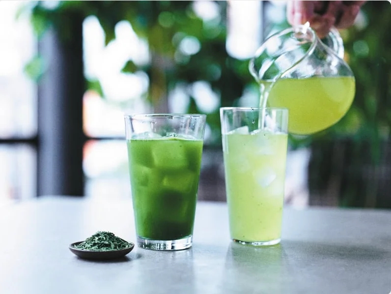 九州大学「久山町研究」の研究結果からも「テアニン」摂取が糖尿病の発症に対して保護的に働く結果が得られており、「伊右衛⾨カフェ」では、心も身体も前向きで健やかな状態を保つために「Green Tea First=まずは、お茶を一杯」をお薦めしています。京都の老舗茶舗「福寿園」の茶葉を使用した日本茶をはじめ、日本茶を使用したオリジナルのアレンジメニューも取り揃えております。