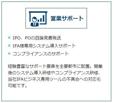 | 特徴・他 | IFA(金融商品仲介業者)とはindependent financial advisorの略で、特定の証券会社などに縛られることがない独立したファイナンシャルアドバイザーを指します。