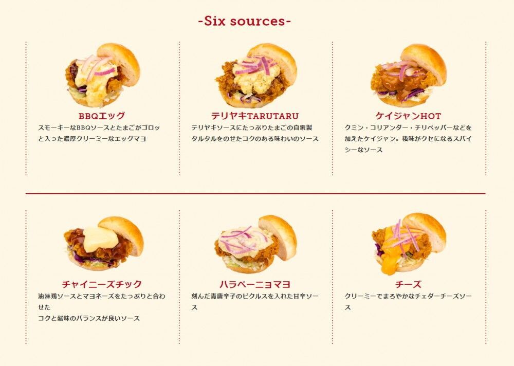 Point①「6種類のソースから選べる本格チキンバーガー」