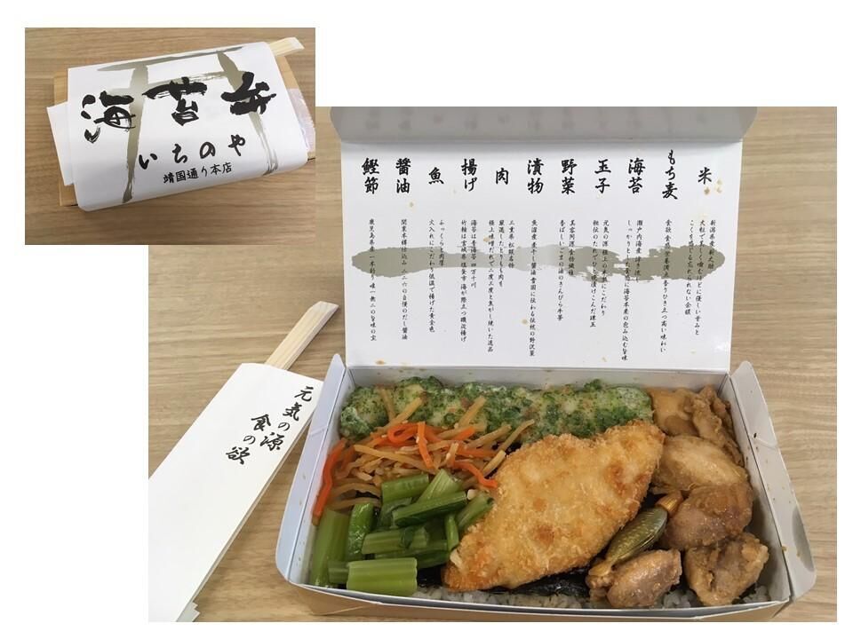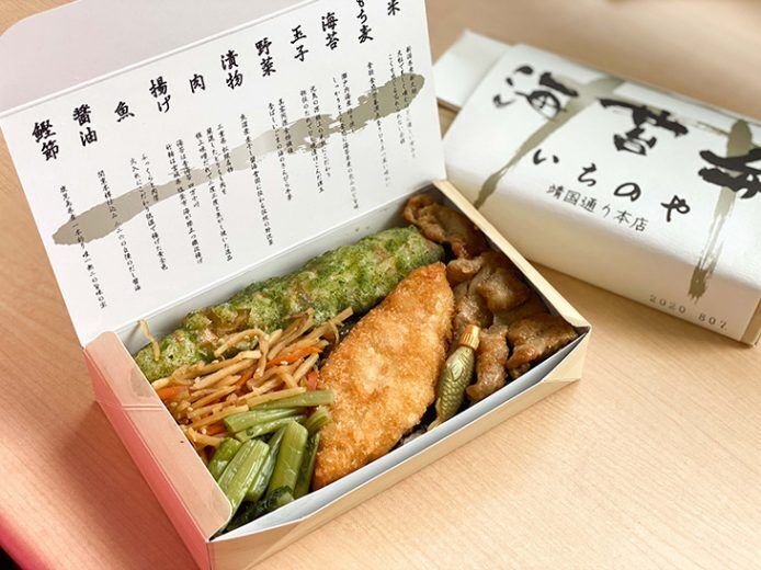 手に取ればずっしりと、ふたを開ければ期待が膨らむ豊かな風景。箸をすすめる度におどろきと笑顔が溢れる海苔弁。元気の源、食の欲。海苔弁で日本を元気に。食の欲で日本を元気に。「海苔弁いちのや 靖国通り本店」