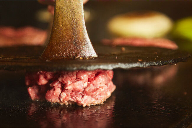 SHOGUN BURGER自慢の和牛100%パテは、焼肉屋が作るグルメバーガーならではの“肉肉しさ”を表現するために、牛スネ肉を粗挽きにしてスマッシュしています。