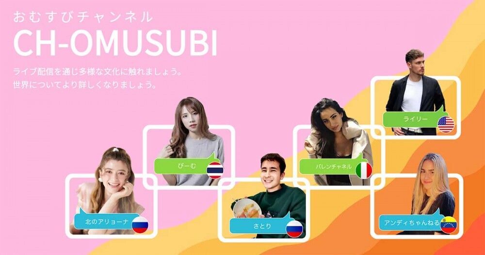 当社「おむすびチャンネル」は、日本語を学習する親日外国人が『配信者』として自己表現をし、日本人が『視聴者』としてその様子を視聴し、コメント機能を通じリアルタイムで交流したり、投げ銭機能を通じ配信者を応援できる『投げ銭型ライブ配信プラットフォーム』となっています。