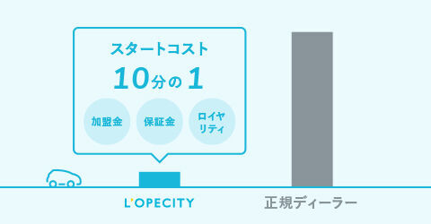 ロペシティFCの加盟には加盟金・保証金・ロイヤリティが必要になります。正規輸入車ディーラーの新規スタートコストと比較しても10分の1程度でスタートできます!