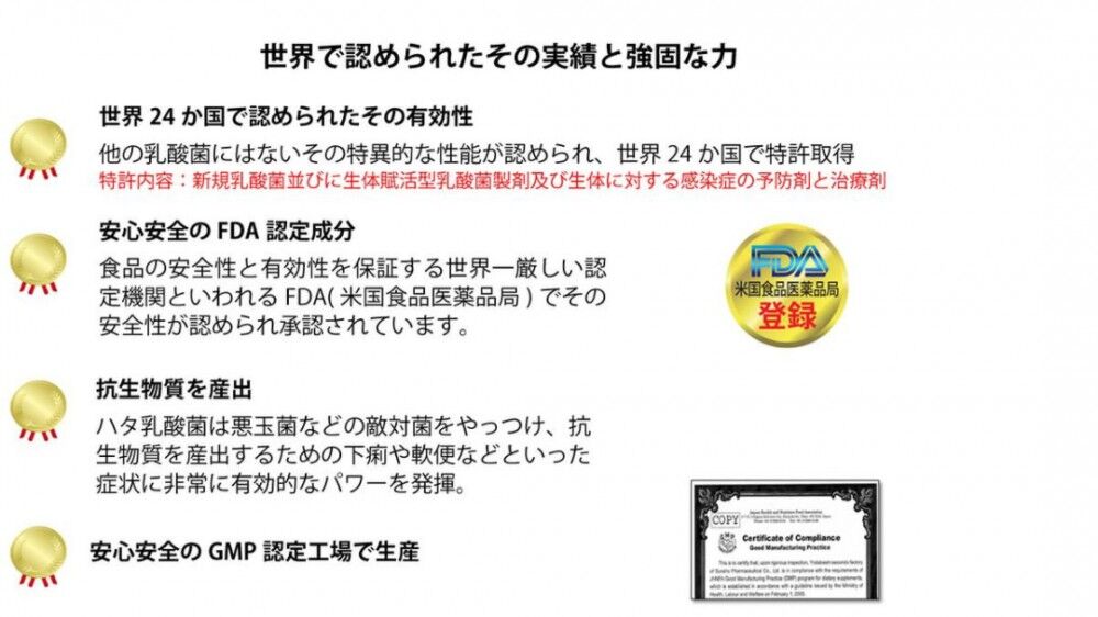 <特許内容>新規乳酸菌並びに生体賦活型乳酸菌製剤及び生体に対する感染症予防材と治療剤(日本特許第4661593号)