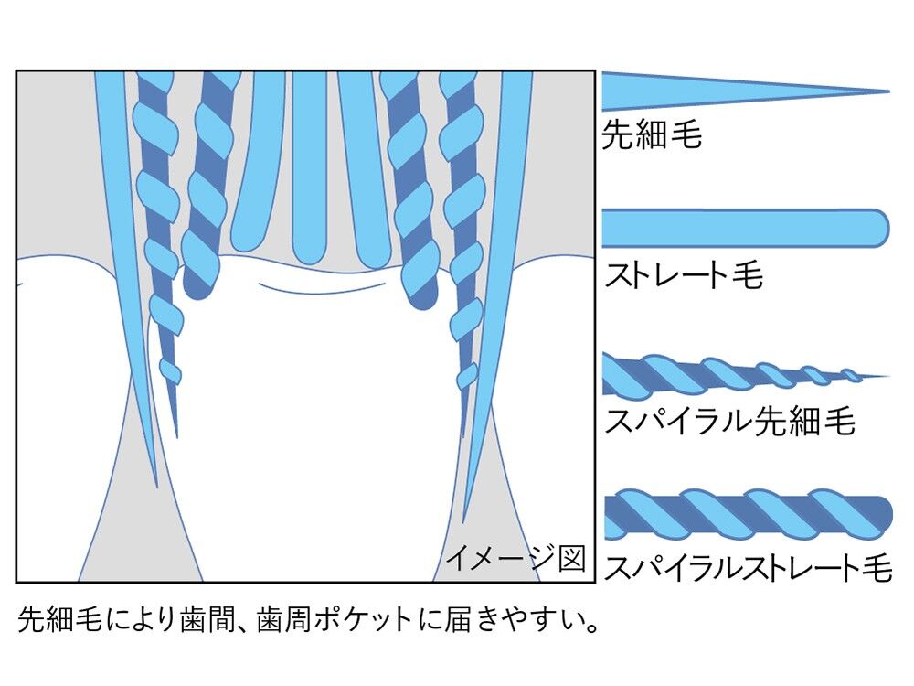 音波振動ハブラシ専用に設計したブラシヘッドは、ブラシと歯の接触面積の最大化を目指した設計。