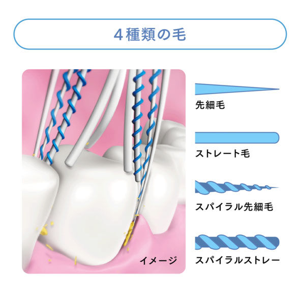4種類の毛の高密度植毛(約1700本)によりしっかり歯垢を落とします。