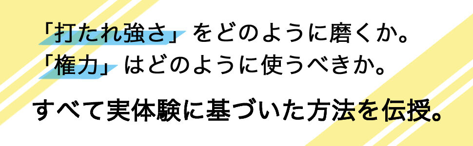カギとなるのは、「失敗」「挫折」体験。これらをどう生かし、「強いリーダー」になるかの方策を説くのが本書だ。「抵抗勢力との戦い方」「権力の上手な使い方」「撤退戦のコツ」「敵対者の説得法」など、著者の実体験から得られた「リアルすぎる」リーダーのノウハウを余すところなく語り下ろす。
