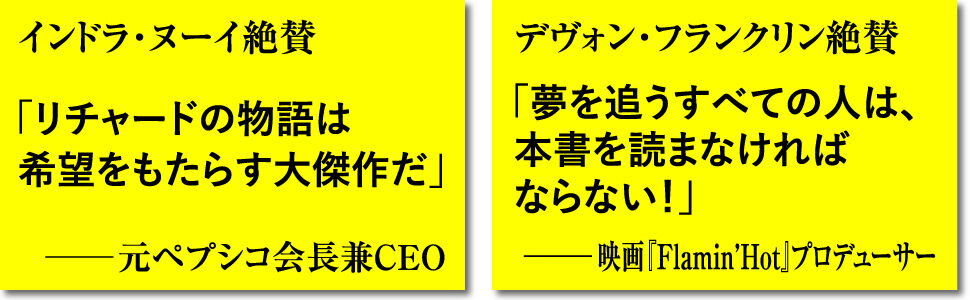 そんな彼が、ペプシコの子会社であるフリトレー工場の用務員からスタートし、どのように世界でもっとも売れたスナック菓子「フレーミング・ホット・チートス」を開発し、ペプシコで初めてのメキシコ系アメリカ人エグゼクティブであるペプシコの副社長に就任するまでになったのか。