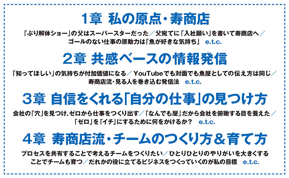 代々鮮魚卸を営む一家に育った著者。女性が極端に少ない魚業界へ家業の2代目として飛び込み、YouTubeやSNSで「思い」をシェア。「魚好き」とつながりながら、地域や社会から求められる「魚屋さん」として、日々邁進している。創業者である父のやり方を否定するのではなく、先代が苦手なこと、俯瞰で家業を見た時に出てくる弱点(穴)を冷静に分析。ゼロ→イチの成果を出すことで、職場の中で自分の強みを発揮できる「居場所」を手に入れてきた。「徹夜でのおせちづくり」のプロセスをSNSでシェアしたことが、共感ベースの原点。本書では、YouTubeではあまり語られることのなかった子ども時代から現在、そして未来について語りながら、共感ベースの仕事術や発想法について1冊にまとめました。YouTubeチャンネルで人気の、絶品お魚レシピや魚のさばき方の基本も紹介。