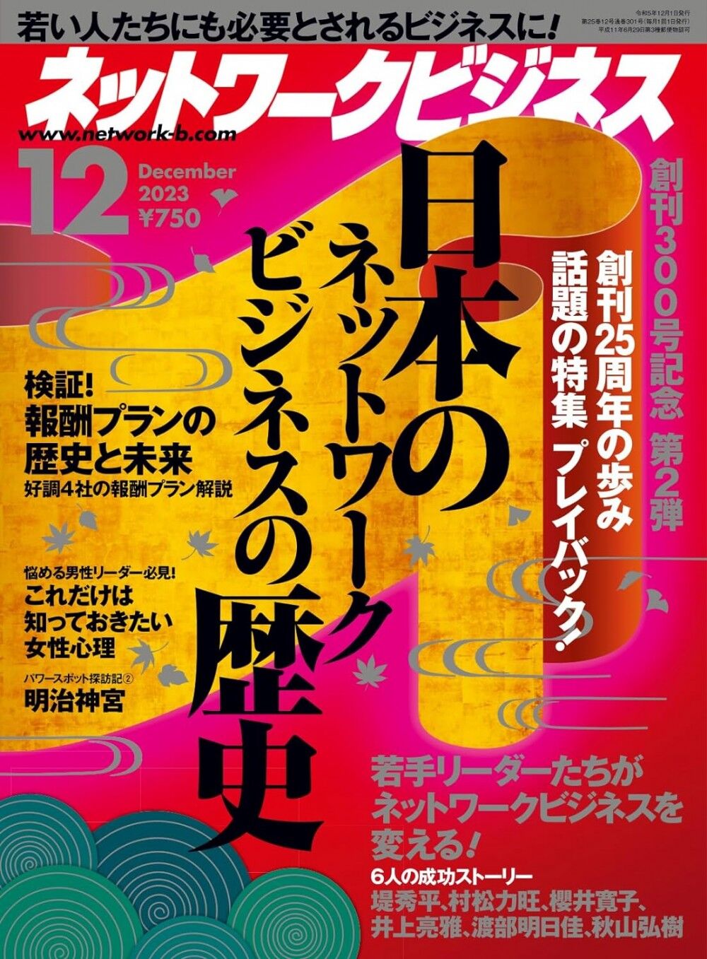 未開の地ともいうべきネットワークビジネス界の情報開示とイメージアップを目的に1998年に創刊。以来、ビジネスに関する最新潮流からビジネス展開のノウハウ、開業情報まで完全網羅し、ネットワークビジネスに携わる多くの読者から質量ともに高い評価を得ています。