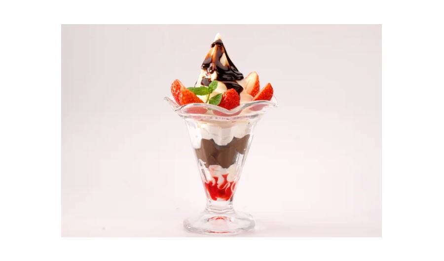 たっぷりホイップとソフトクリームにチョコソースをかけ、甘酸っぱいいちごをトッピング♪さらに中にはチョコプリンも入った贅沢パフェです。