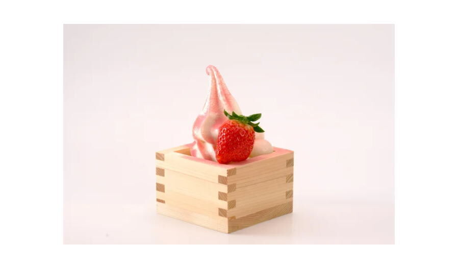 枡に入れたソフトクリームに、白玉と生のいちごをまるごと1個トッピングした、見た目も可愛いスイーツをお楽しみください。