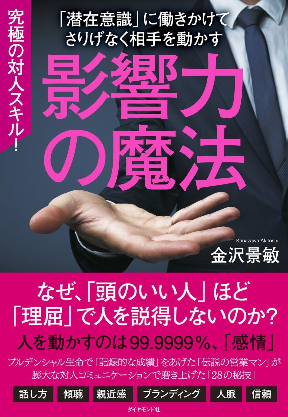 なぜなら、人は「理屈」では動かないからです。人を動かしているのは99.9999%「感情」。だから、相手の「理性」に訴えることよりも、相手の「潜在意識」に働きかけることによって、「この人は信頼できる」「この人を応援したい」「この人の力になりたい」という「感情」を持ってもらうことが大切。その「感情」さえもってもらえれば、自然と相手はこちらの意図を汲んで動いてくれます。この「潜在意識に働きかけて、相手を動かす力」を「影響力」というのです。