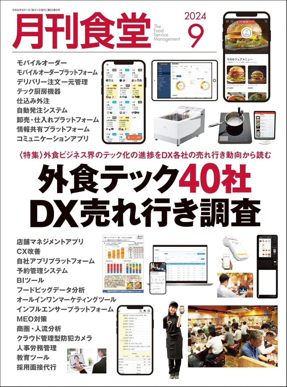 外食ビジネスのテック化は実験段階から実装段階に入った観がある。本特集では外食テック企業40社が提供する売れ行き好調なデジタル技術の大調査を通じて、外食業のDXがどこまで進んでいるのか、その進捗を探っていきたい。DXの目的は単なる効率化ではなく、外食業界で働くすべての人を店の収益や現場の意欲向上につながらない業務から解放することだ。そしてまた、ありとあらゆるコストの上昇、働き手不足も深刻な問題になっている。理想と現実、その双方に横たわる課題解決をサポートする新技術をぜひ本特集から見つけていただきたい。