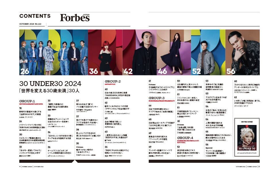 Forbes JAPAN(フォーブスジャパン)「世界を変える30歳未満30人」2024年10月号