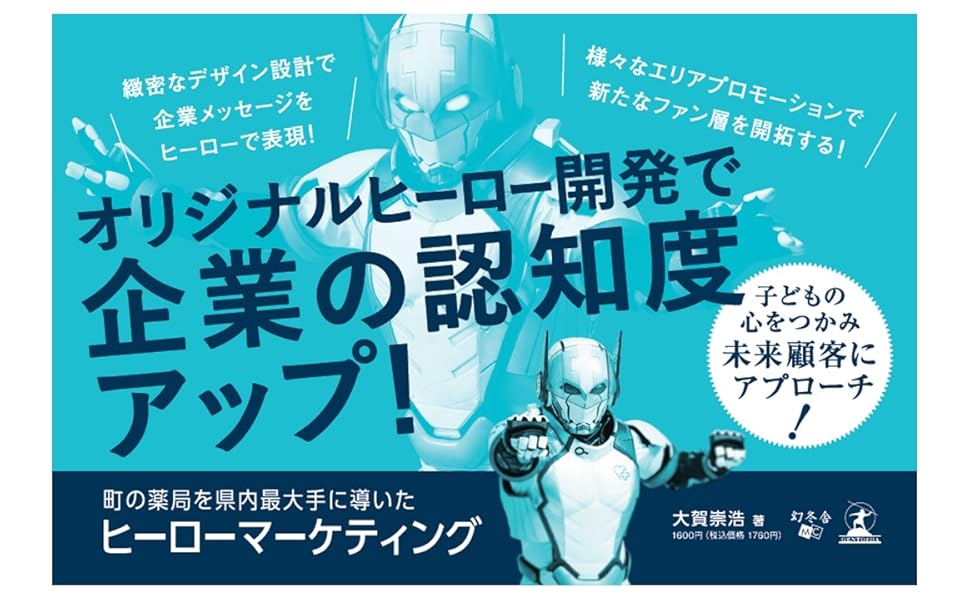こうしたジリ貧の状況を大きく変えたのが、生粋の特撮好きだった著者自らがヒーローに扮し、自社をPRするという斬新なマーケティング戦略でした。「ヒーローマーケティング」と名付けられたこの戦略の中から誕生した「薬剤戦師オーガマン」は、SNSでの情報発信をはじめ、地方テレビ番組への出演、イベントショーの開催などを通じて幅広い年齢層に受け入れられ、地域での企業認知度を劇的に向上させていきました。