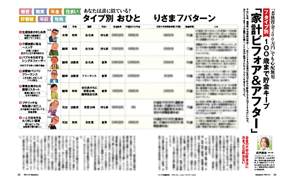 7タイプ別◎100歳まで貯金キープ「家計ビフォア&アフター」――井戸美枝