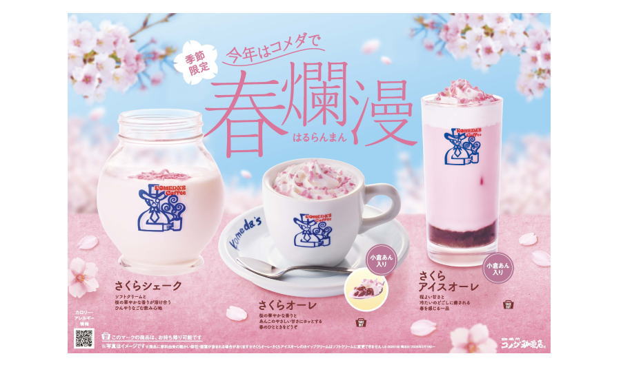 全国にフルサービス型の喫茶店を展開する株式会社コメダ[本社:愛知県 代表取締役社長:甘利 祐一 グループ店舗数:1,071店舗(2025年1月末時点)]は、全国のコメダ珈琲店で2025年2月19日(水)より季節限定で「春爛漫 さくらシェーク」「春爛漫 さくらオーレ」「春爛漫 さくらアイスオーレ」を販売いたします。