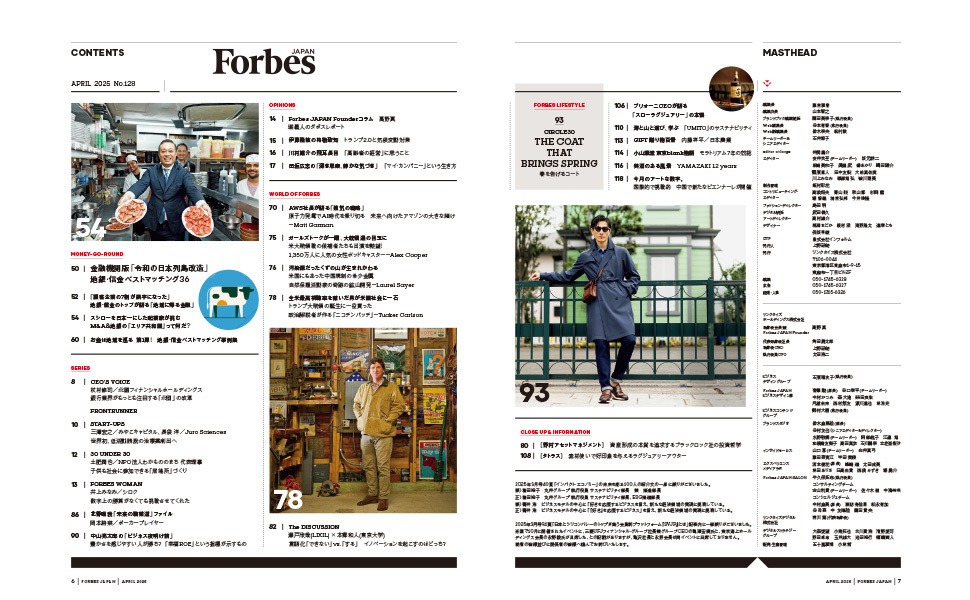 - Forbes JAPAN(フォーブスジャパン)「スモール・ジャイアンツ」2025年4月号