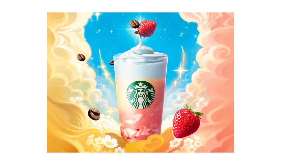 - ミルクコーヒーがストロベリー風味に味が変化する新体験『春空 ミルクコーヒー フラペチーノ®』