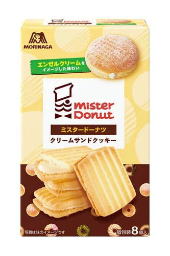 ミスタードーナツクリームサンドクッキーは、ドーナツの揚げた風味をイメージしたクッキー生地で、生乳のフレッシな味わいをイメージしたクリームをサンドしました。