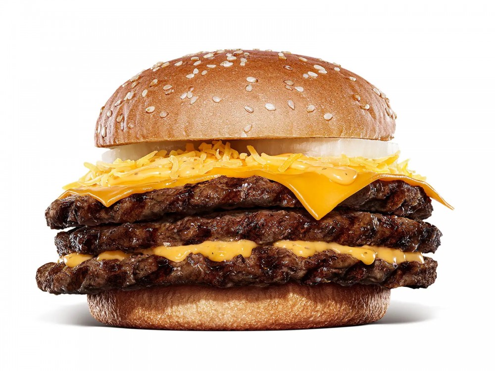 直火焼きビーフパティ3枚に濃厚チーズの売上No.1「チーズ&チーズ」復活!