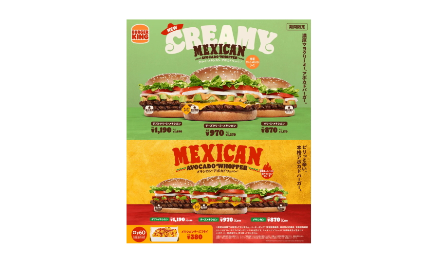 バーガーキング®の大人気「メキシカン・アボカドワッパー®」から新作登場!本格メキシカンのスパイスを使用した濃厚な新開発ソースがアボカドと相性抜群!「クリーミーメキシカン・アボカドワッパー®」新発売!