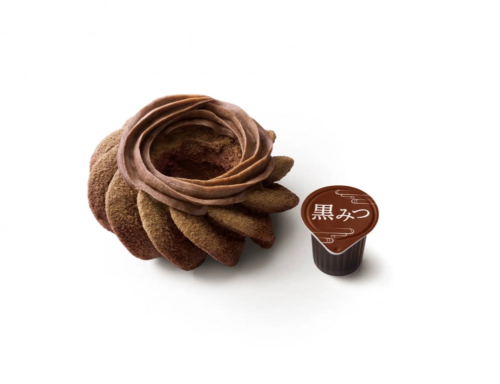 祇園辻利の宇治抹茶を練り込んだもちもち食感のポン・デ・リング生地に黒糖わらびもちと抹茶ホイップをサンドして、きなこシュガーをトッピング。宇治抹茶と和素材のおいしさが重なった一品に仕上げました。