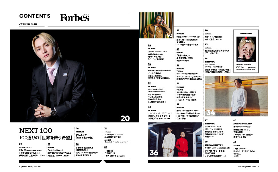 Forbes JAPAN「NEXT100 100通りの世界を救う希望」2025年6月号