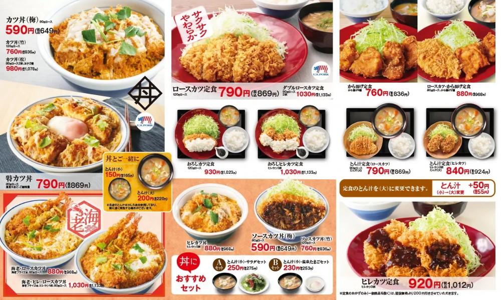 なお、「かつや」では、店内でのお⾷事だけでなくお持ち帰りのお弁当やとん汁、おかずのみでもご利⽤いただけます。