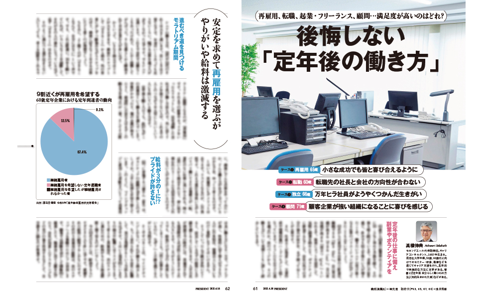 再雇用、転職、起業・フリーランス、顧問……満足度が高いのはどれ?