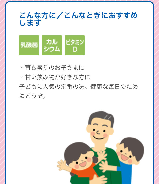 原材料名 砂糖混合果糖ぶどう糖液糖、砂糖、乳製品、デキストリン、ミルクカルシウム/酸味料、安定剤(大豆多糖類)、香料、カラメル色素、ビタミンD