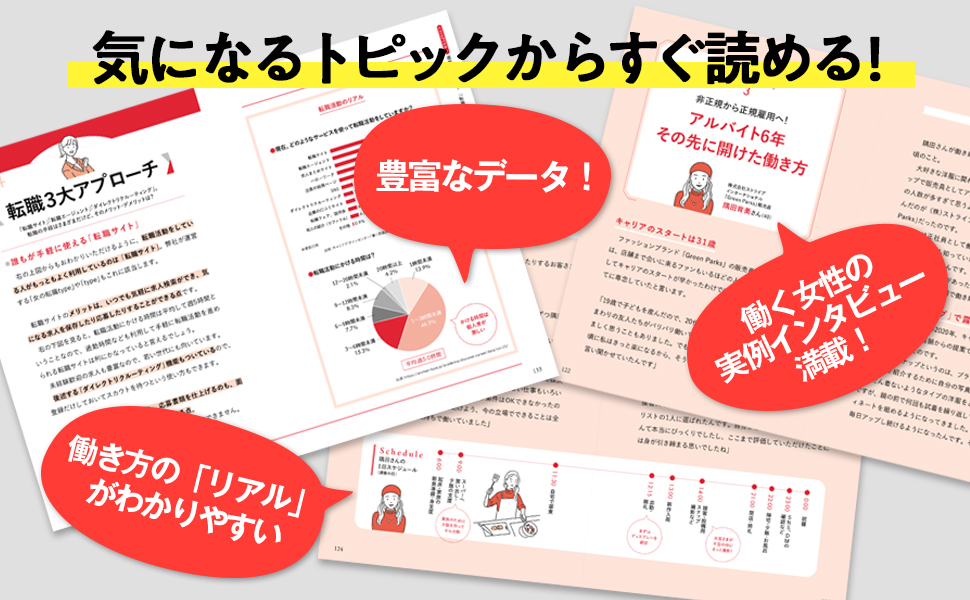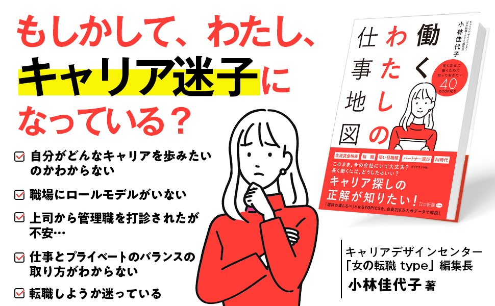 女性が長く、幸せに働くために、知っておきたい40トピックスについて、「女の転職type」編集長が、豊富なデータを交えて徹底解説。生涯賃金格差、転職、狙い目職種など実用的なテーマから、パートナー選びや妊娠・出産まで、幅広くキーワードをカバーする。