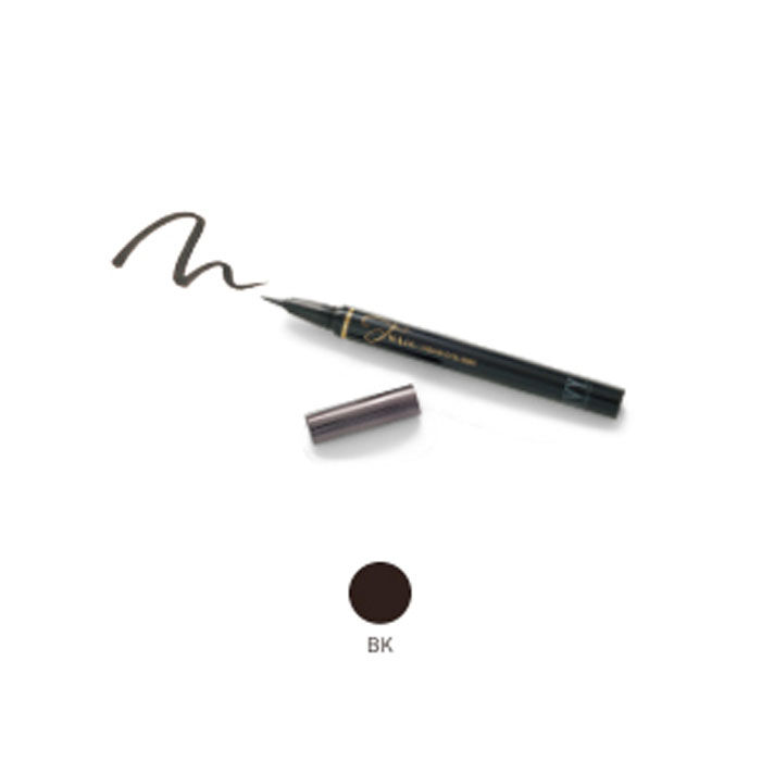 程よいコシのある細筆で、まつ毛の隙間や目尻の際まで簡単にきれいなラインを引くことができます。しっかり発色で汗・水・皮脂に強く、にじみを防ぎます。