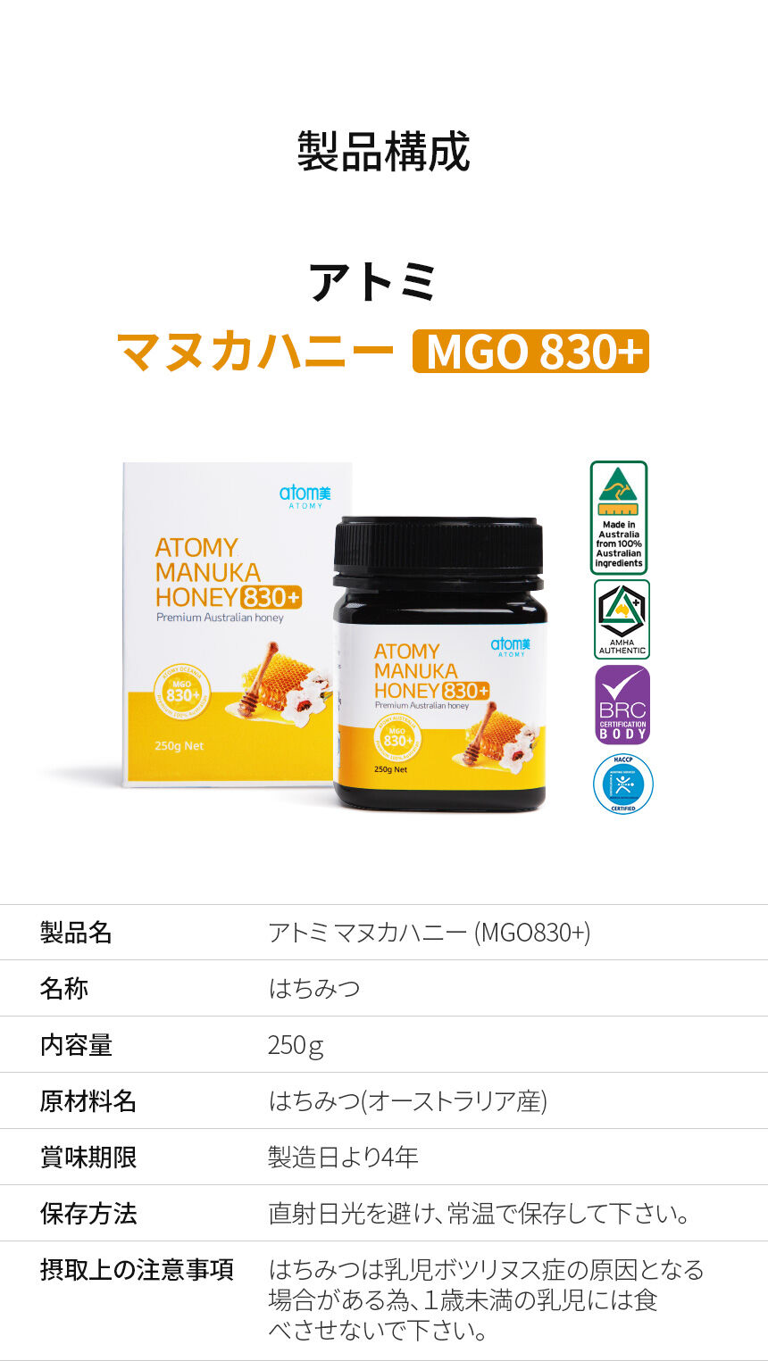 アトミ マヌカハニー(MGO830+)