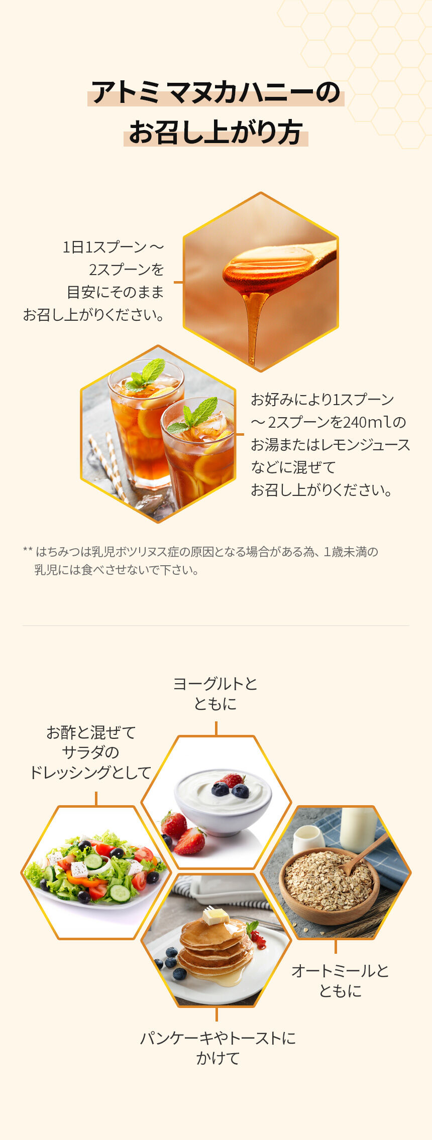 お料理で煮物など白砂糖の代わりにマヌカハニーを使用してみてはいかがでしょうか?