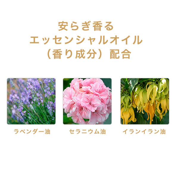 ※香り成分:ラベンダー油/ゼラニウム油/イランイラン油