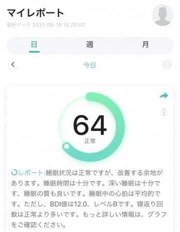 まだ、使用して1週間なので、目に見える体感はありませんが、スマートウォッチの「睡眠の質のスコアー(熟睡度)」は通常より上昇しました。