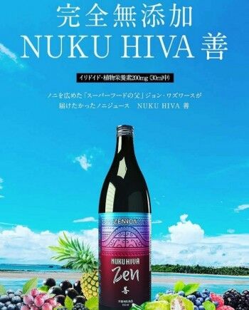 マズくて罰ゲームで有名なノニジュースですが、ZENNOA社のNUKUHIVA善はフルーティーで美味しく、ゴクゴク飲めちゃいます!!
