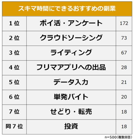 【隙間時間にできるおすすめの副業ランキング】男女500人アンケート調査