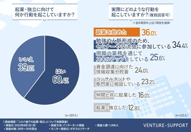 起業・独立を考えている人の6割が将来の起業・独立を念頭にすでに行動を起こしている