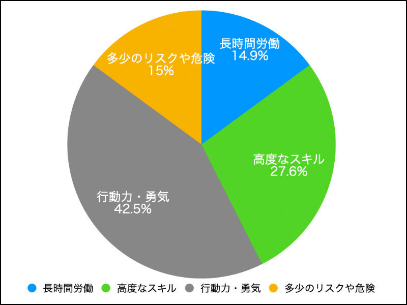 短期間でお金を稼ぐには「行動力・勇気」が必要にという意見が最多でした。
