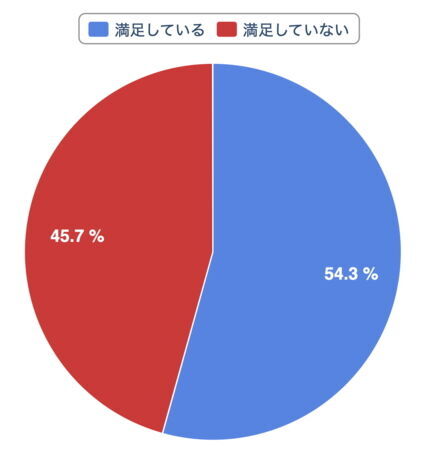 - ▶︎ 現在の仕事に満足していないママたちは約45%。理由としては、給料の低さや待遇面など。