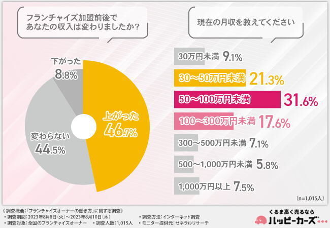 ここまでの調査で、4割以上の方がフランチャイズ加盟前後で収入が上がったことが明らかになりました。