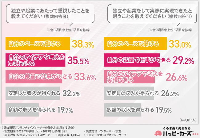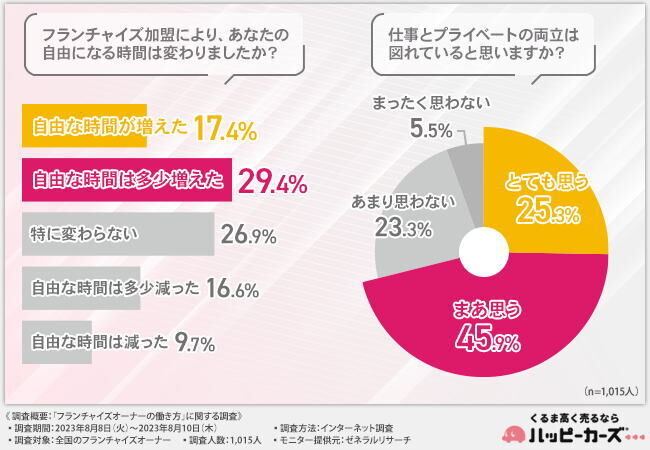 そこで今回、出張中古車買取「ハッピーカーズ(https://happycars.jp/)」を手掛ける株式会社ハッピーカーズは全国のフランチャイズオーナーを対象に、「フランチャイズオーナーの働き方」に関する調査を実施しました。
