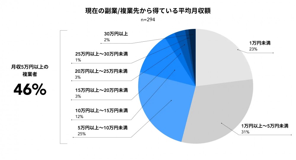 ・月収5万円以上の複業者が全体の46%、新たな収入源として定着
